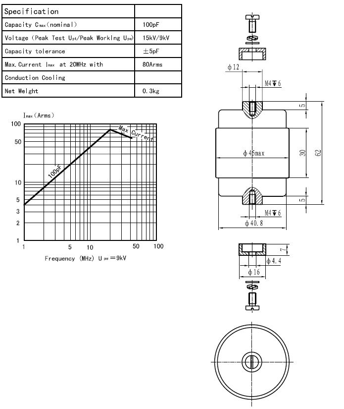 CKT100/10/80固定陶瓷高压真空电容器采用陶瓷外壳、真空介质、具有耐压高、体积小、Q值高、性能稳定可靠价格低廉等特点,广泛用于感应加热、介质加热、通讯、广播等设备。