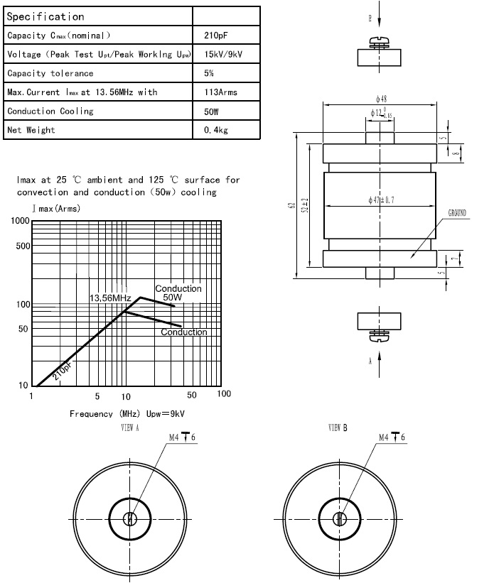 CKT210/10/113固定陶瓷高压真空电容器采用陶瓷外壳、真空介质、具有耐压高、体积小、Q值高、性能稳定可靠价格低廉等特点,广泛用于感应加热、介质加热、通讯、广播等设备。