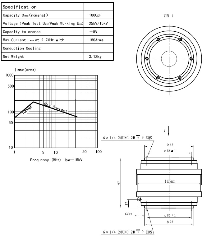 CKT1000/17.5/180固定陶瓷高压真空电容器采用陶瓷外壳、真空介质、具有耐压高、体积小、Q值高、性能稳定可靠价格低廉等特点,广泛用于感应加热、介质加热、通讯、广播等设备。