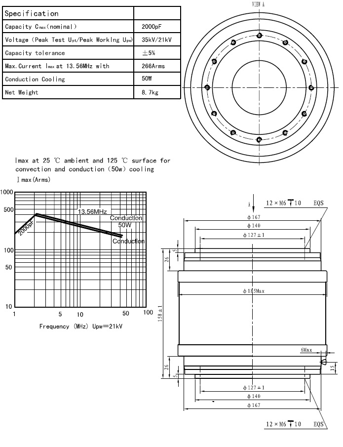 CKT2000/24/266固定陶瓷高压真空电容器采用陶瓷外壳、真空介质、具有耐压高、体积小、Q值高、性能稳定可靠广泛用于感应加热、介质加热、通讯、广播等设备。