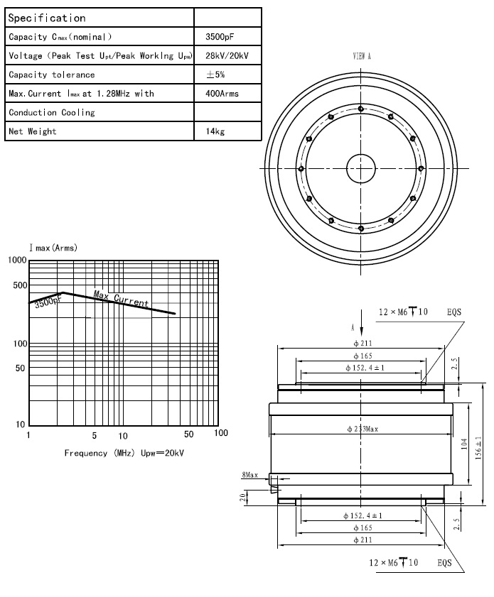 CKT3500/20/400固定陶瓷高压真空电容器采用陶瓷外壳、真空介质、具有耐压高、体积小、Q值高、性能稳定可靠价格低廉等特点,广泛用于感应加热、介质加热、通讯、广播等设备。