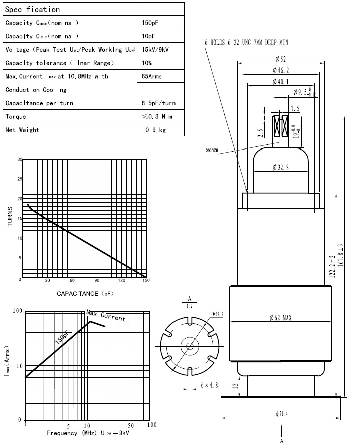 产品名称:可变真空电容器CKTB150/10/65(I)