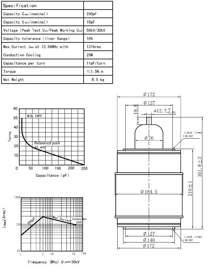 可变真空电容器产品列表 您现在的位置:首页 >> 产品介绍 >> 可变真空电容器CKTB250/35/220