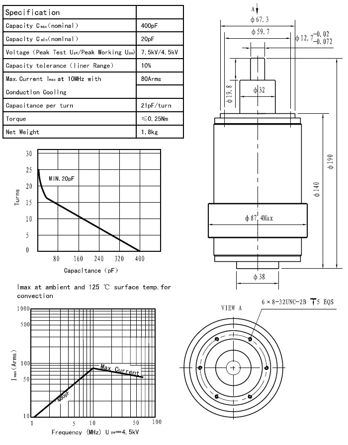 可变真空电容器产品列表 您现在的位置:首页 >> 产品介绍 >> 可变真空电容器CKTB400/5.5/80