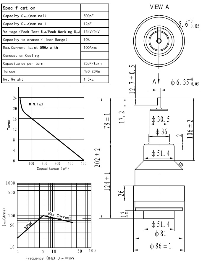 产品名称:可变真空电容器CKTB500/10/100(I)