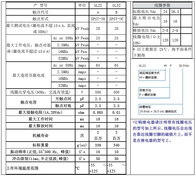 国力与Kilovac型号对照表 您现在的位置:首页 >> 产品介绍 >> 单刀单掷继电器GL22